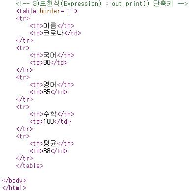 <!-- 3)표현식(Expression) : out.print() 단축키 -->