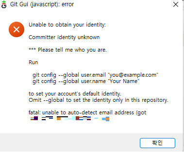 이는 내 데스크탑에 user.email과 user.name 정보가 없어서 발생한 오류이므로 이를 등록해주면 된다.