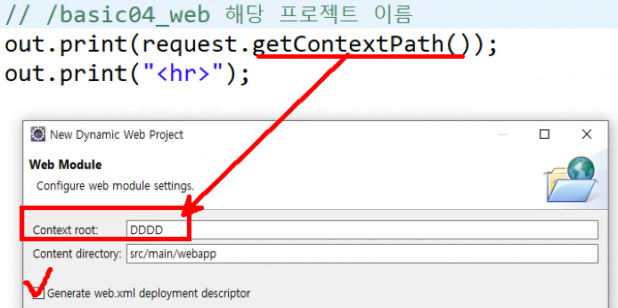 프로젝트 이름은 개발할 때 필요하고 배포할 때는 보통 도메인 이름으로 변경해준다. 그래서 getContextPath()와 같은 메서드를 사용한다.