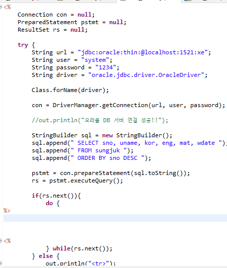 sungjukForm.jsp을 생성하여 값을 입력하면 sungjukIns.jsp에서 보이게 할 것이다.