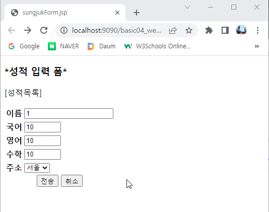 (sungjukForm.jsp -> sungjukIns.jsp)