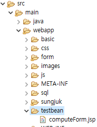 Frontend단에 testbean이라는 폴더를 만들고 그 안에 computeForm.jsp를 만들자