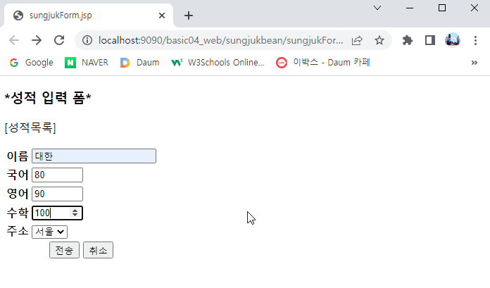 sungjukForm은 지난 시간에 사용했던 파일을 그대로 사용한다.