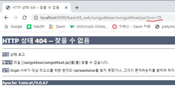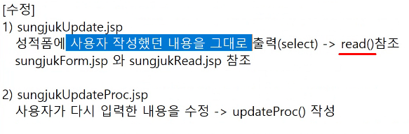 sungjukRead.jsp에서 넘긴 sno를 sungjukUpdate.jsp가 받아와서 새로운 페이지를 만든다.