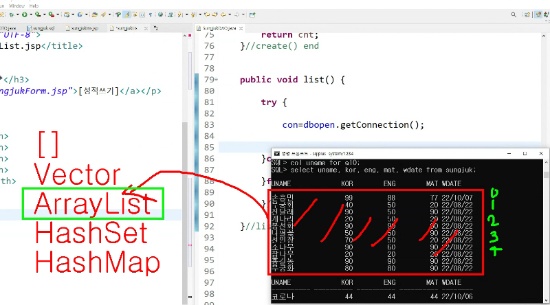 이번에는 지난 시간에 했던 성적 프로그램의 기능들을 클래스로 만들어 DAO(Data Access Object)를 구현해보자