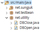 DB open과 close를 위한 클래스를 만들기 위해 net.utility 패키지 안에 DBClose.java와 DBOpen.java를 만든다.