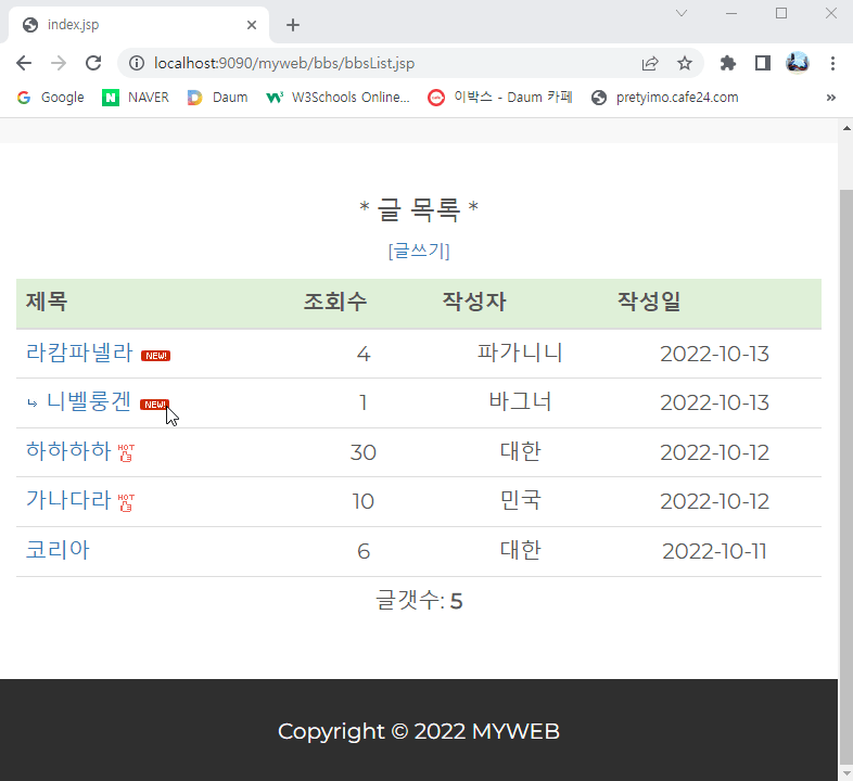 | [51~52일] jsp (18) - myweb 프로젝트(게시판) (0) | 2022.10.11 |