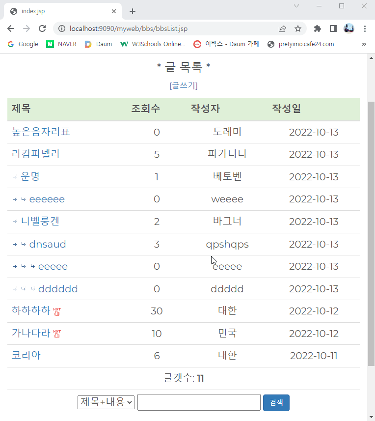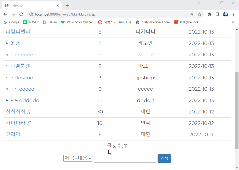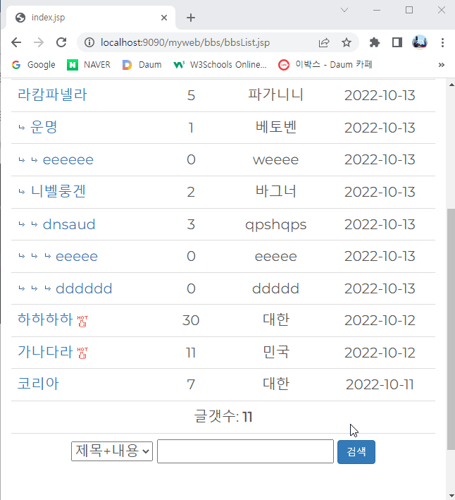 게시판에는 보통 검색 기능이 있다.