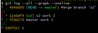 이제 master와 o2를 병합해보자 (o2의 내용을 master로)
