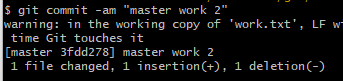 work.txt를 수정(아직 o2브랜치로 이동하지 않았으니 master 브랜치에서 수정하는 것이다.)