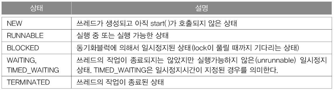 - 스레드의 실행을 제어할 수 있는 메서드가 제공된다.