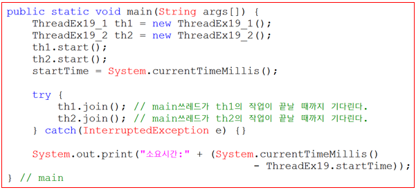 th1.join(); // main쓰레드가 th1의 작업이 끝날 때까지 기다린다.