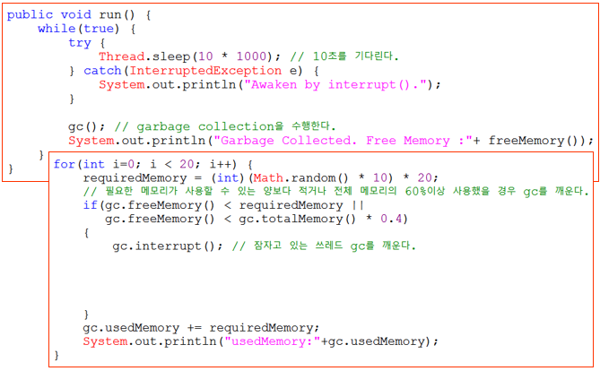 gc.interrupt(); // 잠자고 있는 쓰레드 gc을 깨운다.