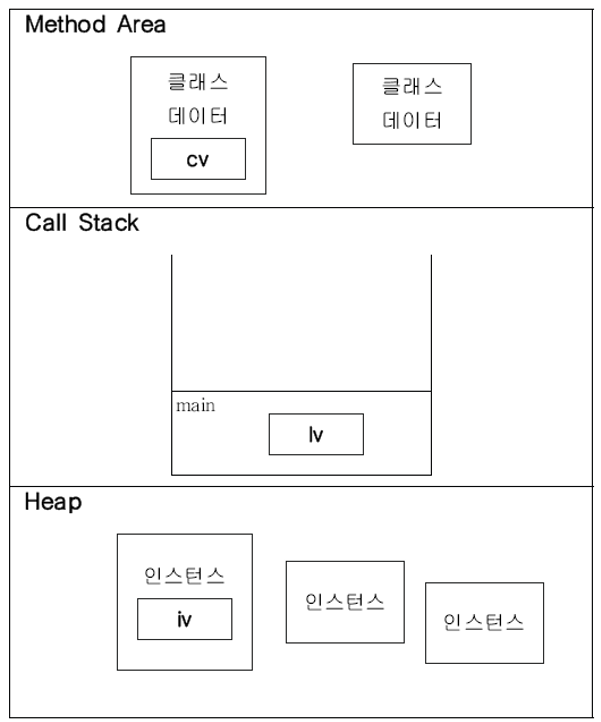 메서드가 호출되면 메서드를 위한 메모리가 할당되며, 메서드가 작업을 수행하는 동안 지역변수들과 연산의 중간결과 등이 저장된다. 메서드가 작업을 마치면 할당되었던 메모리 공간은 반환되어 비워진다.