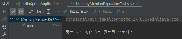 MemberRepository에서 MemoryMemberRepository로 바꾸고 MemoryMemberRepository로 가서