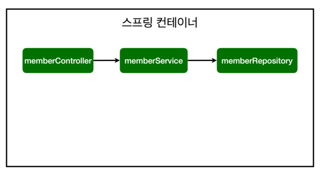 new연산자를 통해 인스턴스를 생성하여 사용할 수도 있지만, Spring이 관리를 하면 다 스프링 컨테이너에 등록을 하고 스프링 컨테이너로부터 받아서 쓰도록 바꿔야 한다.