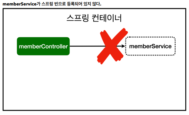 @Autowired를 통한 DI는 helloController , memberService 등과 같이 스프링이 관리하는 객체에서만 동작한다. 스프링 빈으로 등록하지 않고 내가 직접 생성한 객체에서는 동작하지 않는다.
