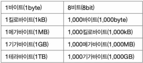 - 바이트, 킬로바이트, 메가바이트, 기가바이트, 테라바이트...