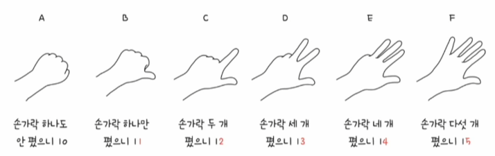 - 수가 15를 넘어가는 시점에 자리올림
