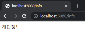 이렇게 변경하고 다시 info에 접속하면 들어가지지 않고, 로그인 페이지가 나온다. @Secured를 통해 원하는 곳만 제한을 걸 수 있다.