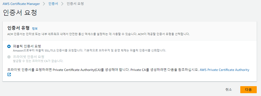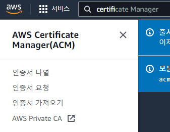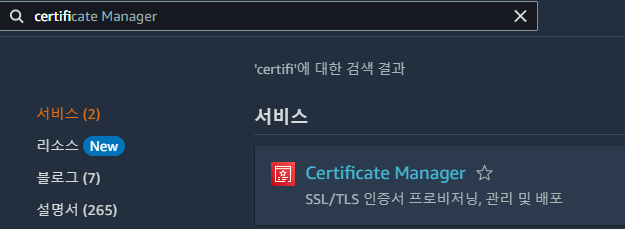 Certificate Manager로 이동 후 인증서 요청을 클릭한다.