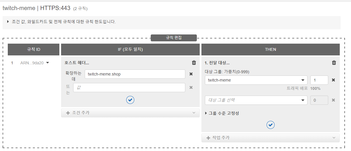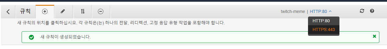 http로 설정한 대상그룹을 전달대상으로 선택한 후 저장한다.