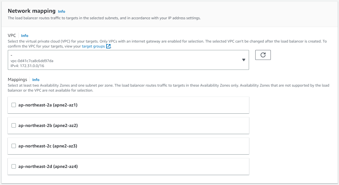 인스턴스와 동일한 지역을 포함해 2개 이상의 영역을 선택한다.