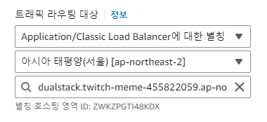 호스팅 영역으로 와서 아까 생성한 A 유형의 레코드를 선택한다.