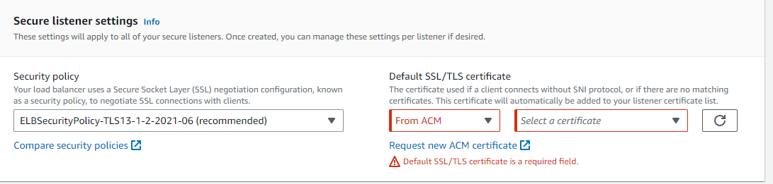 Default SSL/TLS certificate에 아까 만든 Certificate를 선택한다. 그리고 create load balancer를 클릭한다.