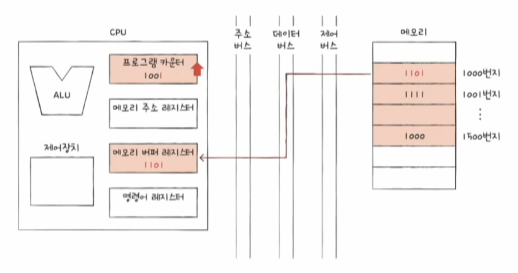 - 메모리 버퍼 레지스터 : 메모리와 주고받을 값을 저장 (데이터와 명령어)