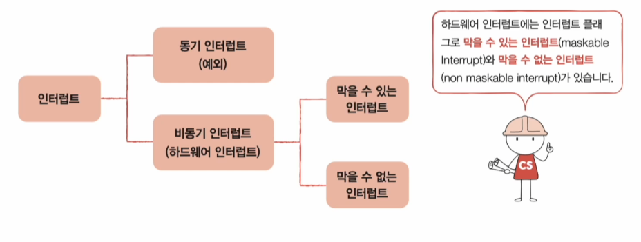 - CPU는 인터럽트 요청을 확인하고 인터럽트 플래그를 통해 현재 인터럽트를 받아들일 수 있는지 여부를 확인한다.