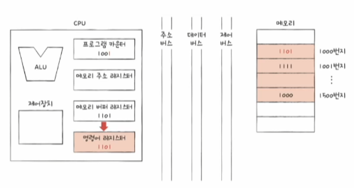 - 명령어 레지스터 : 해석할 명령어(방금 메모리에서 읽어 들인 명령어)를 저장