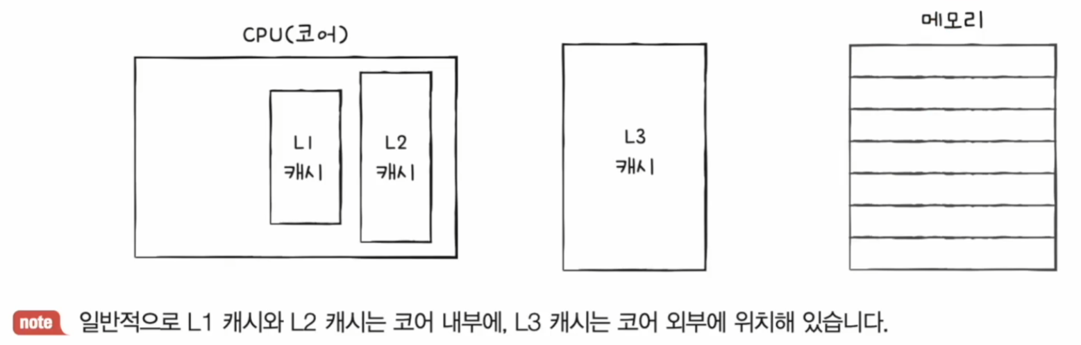 캐시 메모리는 계층적으로 구성할 수 있다. (L1 - L2 - L3 캐시)