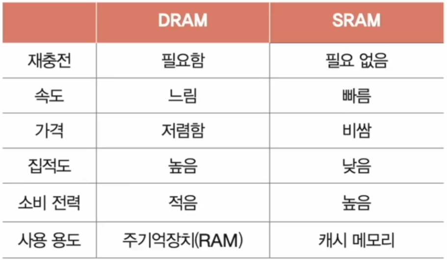 - 저장된 데이터가 동적으로 사라지는 RAM (전원이 공급되고 있어도 저장된 데이터가 점점 없어짐)