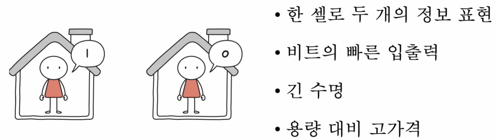 - 2비트를 저장할 수 있는 플래시 메모리 : MLC