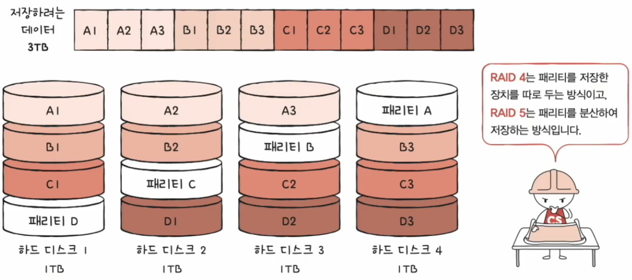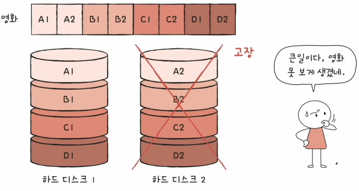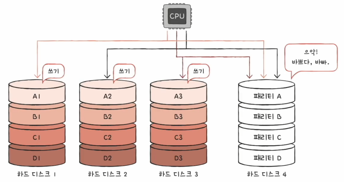 - 각 하드 디스크는 번갈아 가며 데이터를 저장한다.